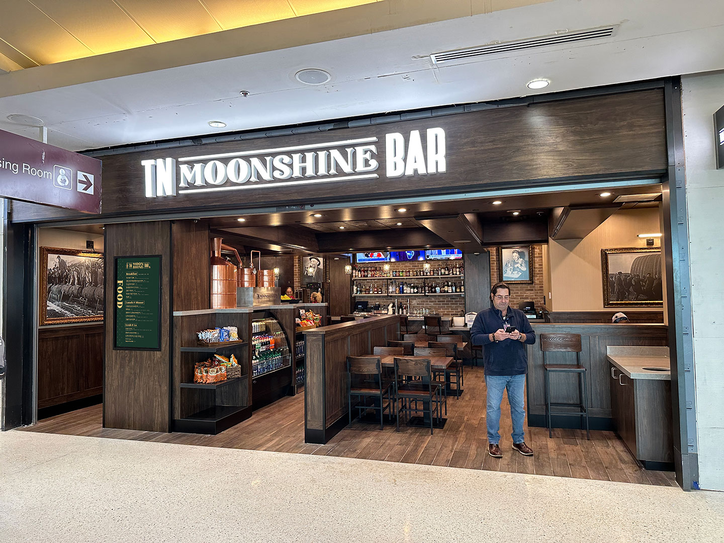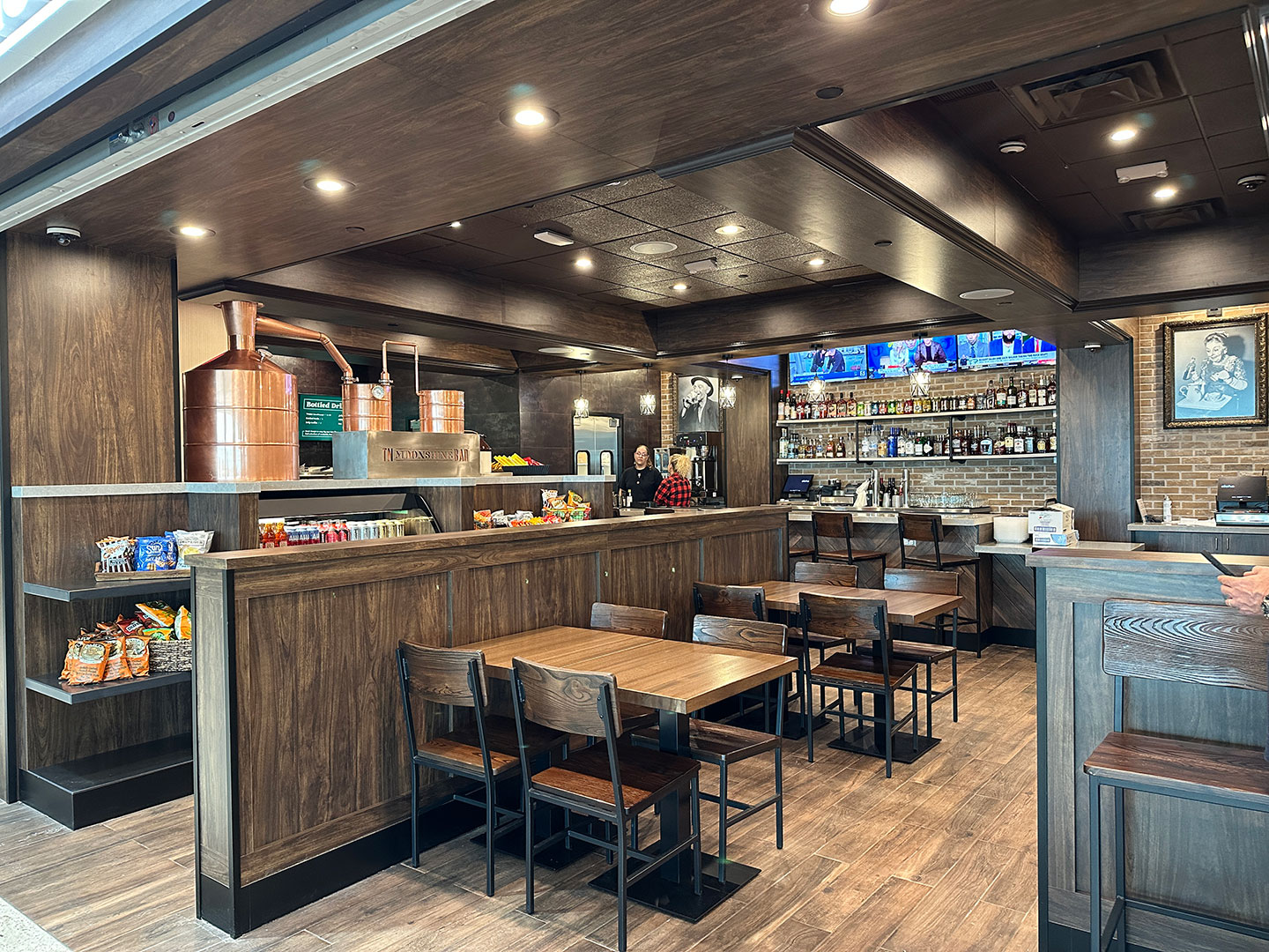 TN Moonshine Bar celebrates Tennessee's distilling heritage, where handcrafted cocktails infused with local moonshine take center stage. With a fully stocked bar, patrons can savor creatively mixed libations while indulging in quick and delectable sandwiches and salads.