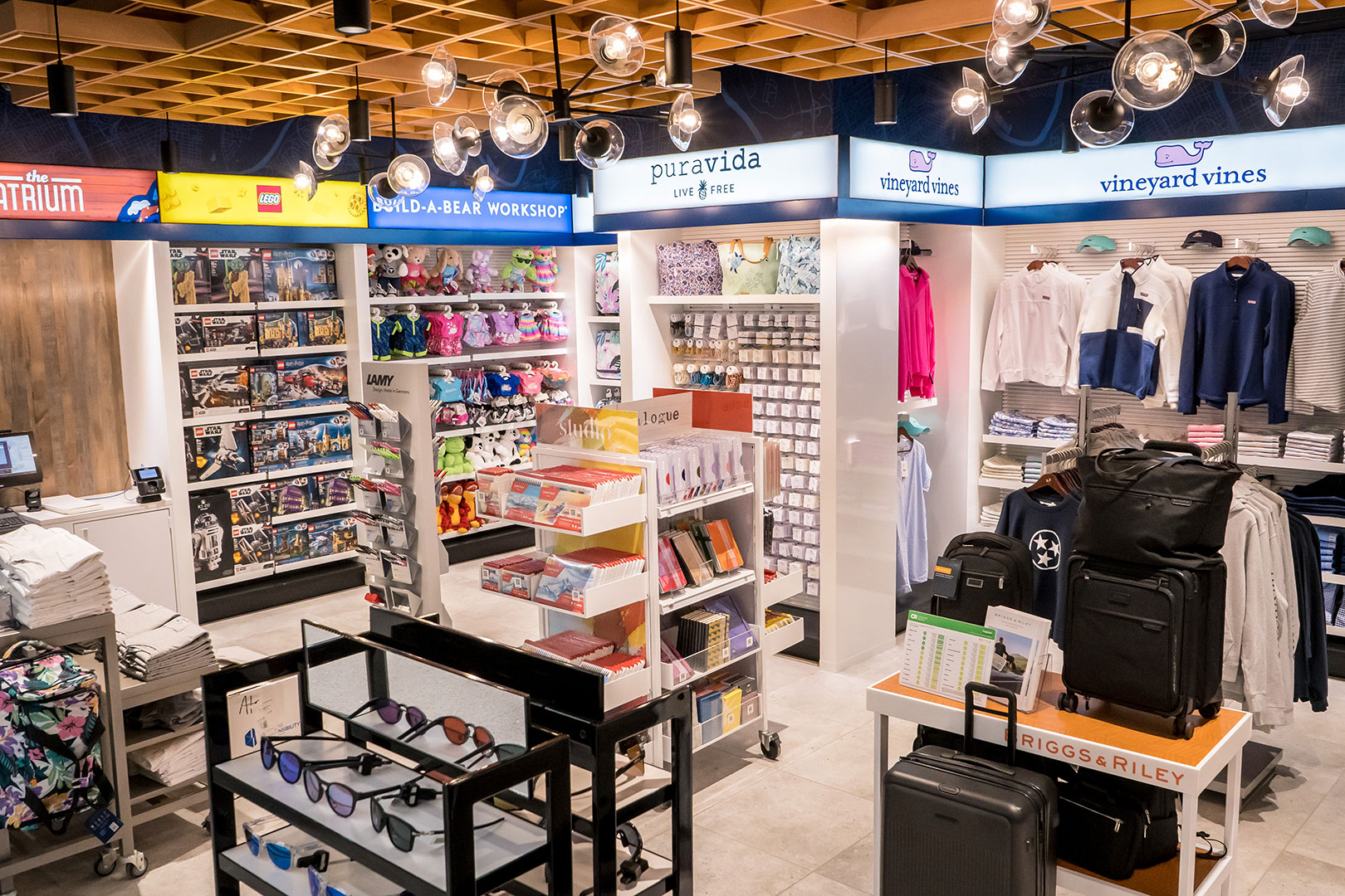 Featuring a collection of local, regional, national, and global brands, The Atrium is a specialty retail experience created by Hudson that offers branded shop-in-shops from Briggs & Riley, Build-A-Bear Workshop®, LAMY, Sunglass Hut, Vineyard Vines, and more.